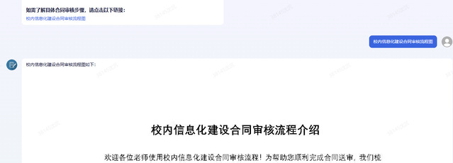 针对合同审核流程不熟悉的情况,可在智能体中点击链接,智能体将返回合同审核流程的详细介绍,示例如下: