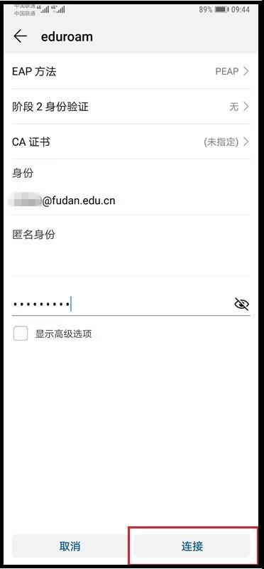 (2)用户名为学号/工号@fudan.edu.cn,密码同UIS密码;