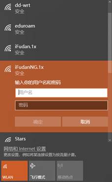 学校教学、科研、办公区域已经完成了5GHz Wi-Fi全覆盖,请使用稳定高速的iFudanNG.1x无线网。我校学生的无线网络账号用户名为学号,密码为统一身份认证密码(具体请参见本手册《统一身份认证平台―UIS》章节),首次连接需输入账号,以后为自动登录,若修改密码后需删除该无线网并重新添加。校外访客用户请使用eduroam。