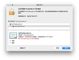 3) 连接过程中可能会弹出窗口提示您验证证书,如下图,此时可选择“始终信任”,然后“继续”;