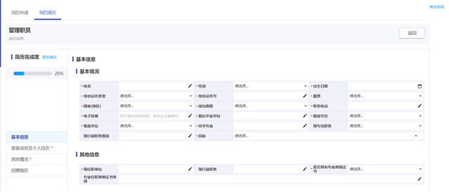 应聘者个人填报,可以填写应聘者个人简历信息。