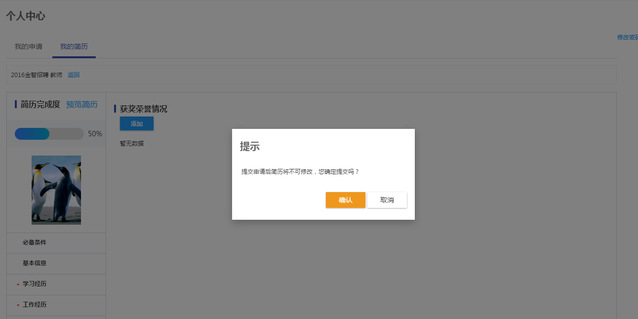 如填写错误,可以在“个人中心”中点击“申请撤销”。