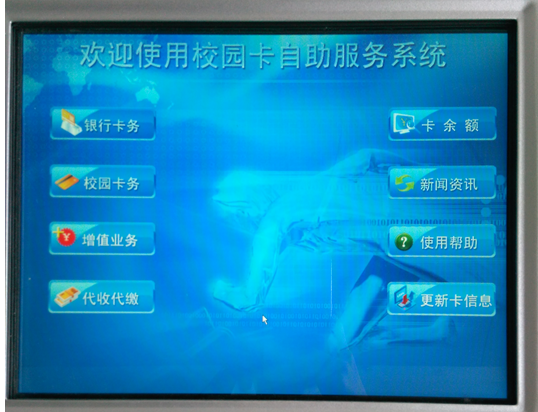 “多媒体自助服务机”在各区域食堂及相关服务区域有配备。如图: