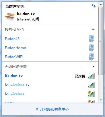 9.点击右下角小电脑图标,等待显示iFudan.1x已连接,即可开始使用无线网络。