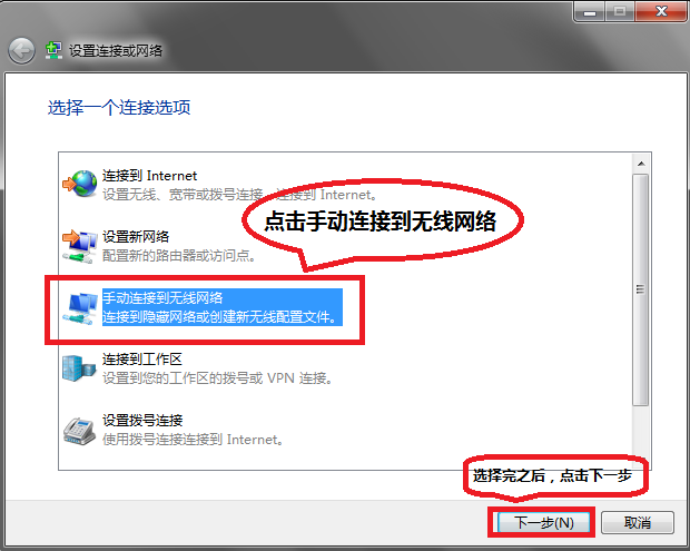 3.选择手动连接无线网络: