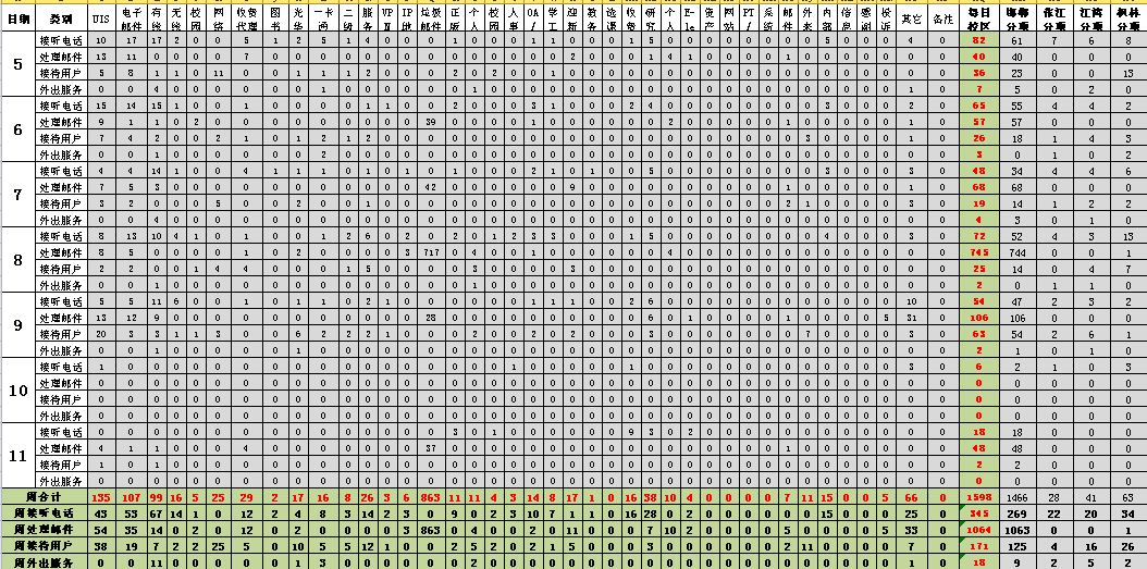 运行服务值班基本数据如下所示: