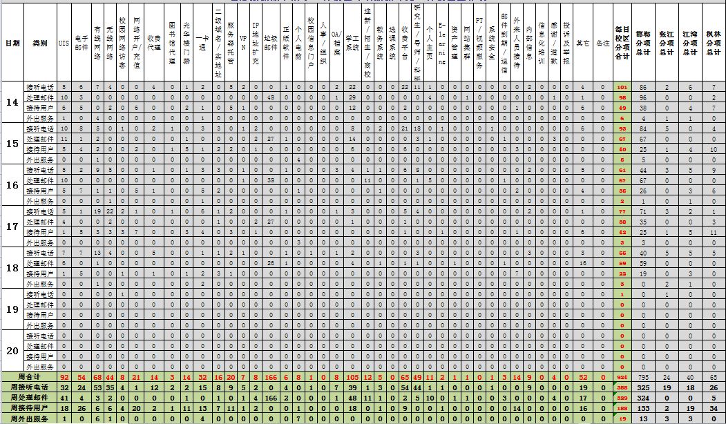 运行服务值班数据统计周报【2011年11月14日-11月20日】