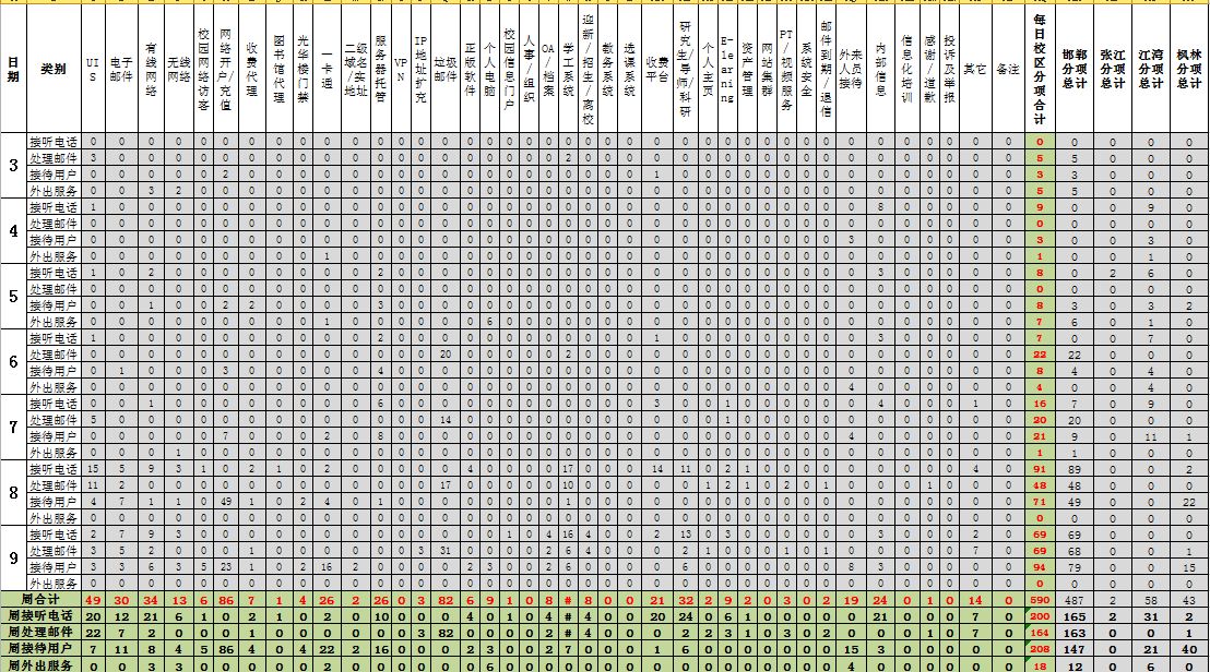 运行服务值班数据统计周报【2011年10月03日-10月09日】