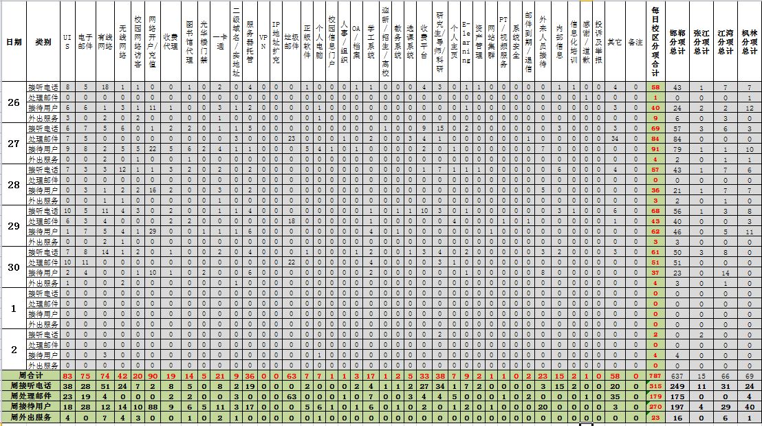 运行服务值班数据统计周报【2011年09月26日-10月02日】