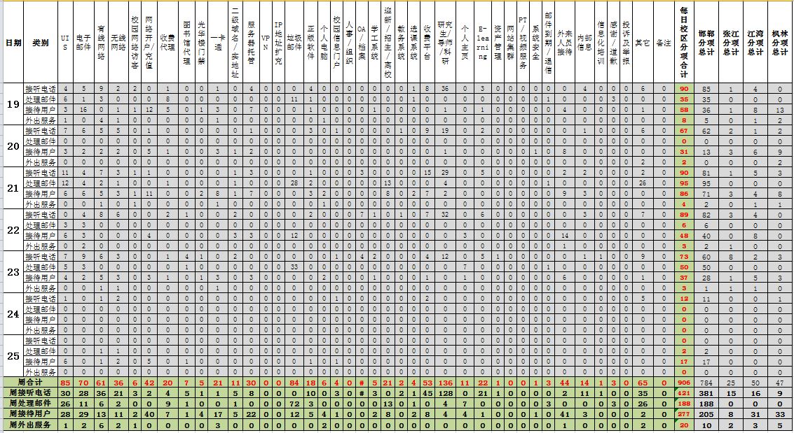 运行服务值班基本数据如下所示: