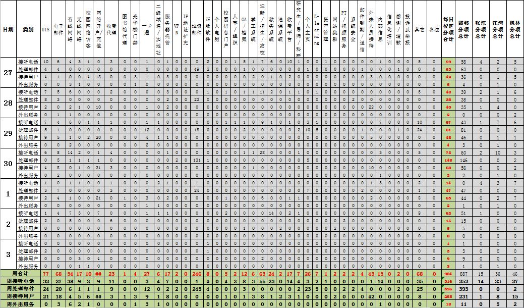 运行服务值班数据统计周报【2011年06月27日-07月03日】