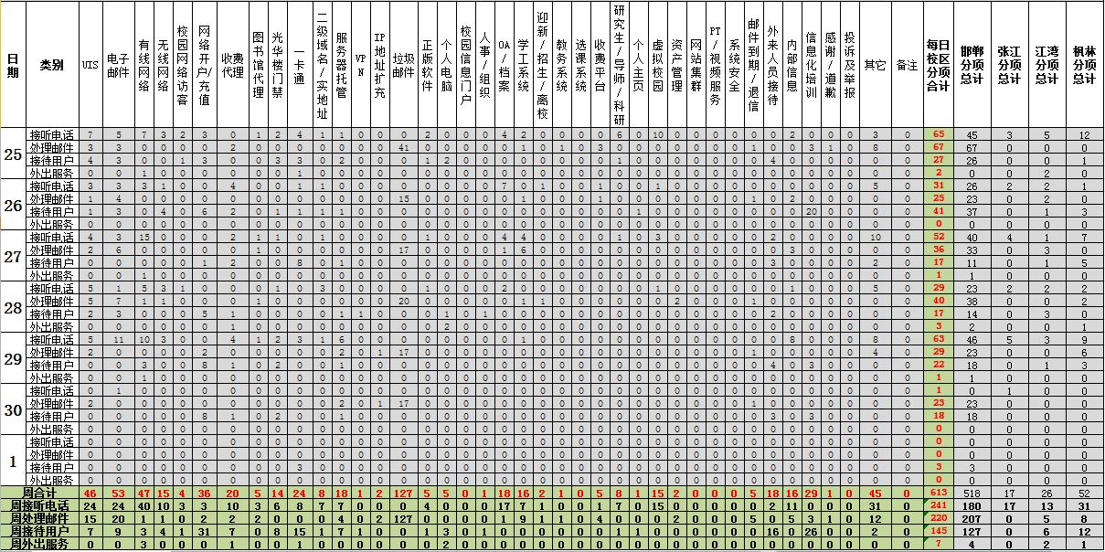 运行服务值班数据统计周报【2011年04月25日-05月01日】