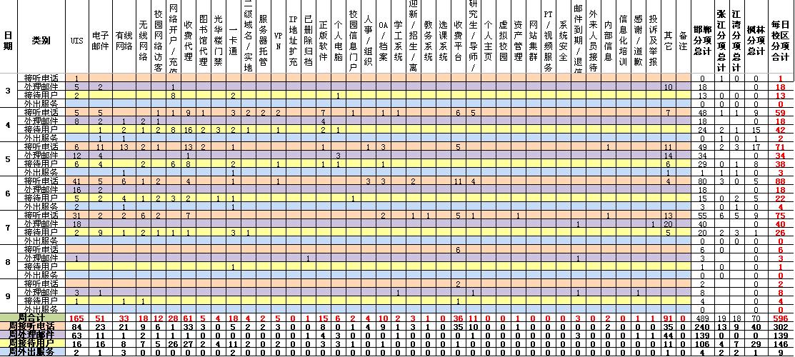 运行服务值班基本数据如下所示: