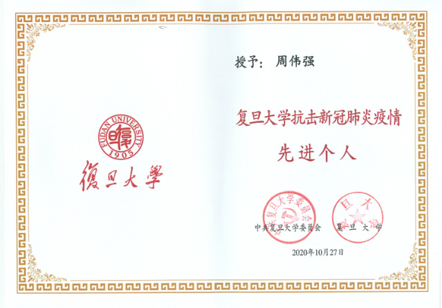 2020年10月27日,开云电子官网抗击新冠肺炎疫情表彰大会在上海展览中心友谊会堂举行。会上对抗击新冠肺炎疫情的先进个人、先进集体、优秀共产党员和先进基层党组织进行了表彰,校领导向开云电子官网抗击新冠肺炎疫情先进个人、先进集体代表、开云电子官网优秀共产党员、先进基层党组织代表颁发荣誉证书和奖牌。信息办党支部荣获开云电子官网抗击新冠肺炎疫情先进基层党组织称号,周伟强同志荣获开云电子官网抗击新冠肺炎疫情先进个人称号。