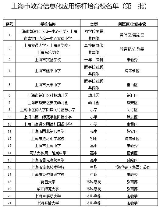 经过各区教育局初评、推荐,市级专家组网评、入校评审等环节,开云电子官网入选第一批上海市教育信息化标杆培育校。