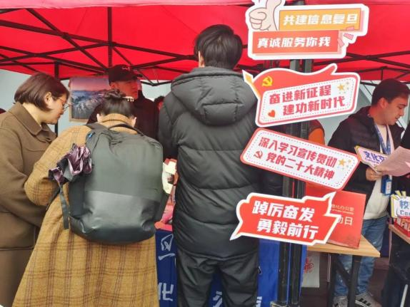当天中午,信息办志愿者们在邯郸校区北区食堂门口精心布置服务台,热情迎接每位师生,为他们提供信息化咨询与服务。无论是关于校内电子资源的使用,还是网络安全知识的科普,亦或是IT技术咨询、网络配置、密码修改、正版软件安装等实际问题,信息办志愿者们都耐心细致地解答,旨在解决师生问题,增进师生对信息化的了解,增加信息办与师生沟通的渠道。