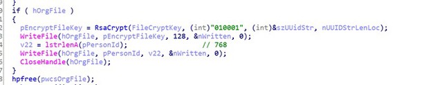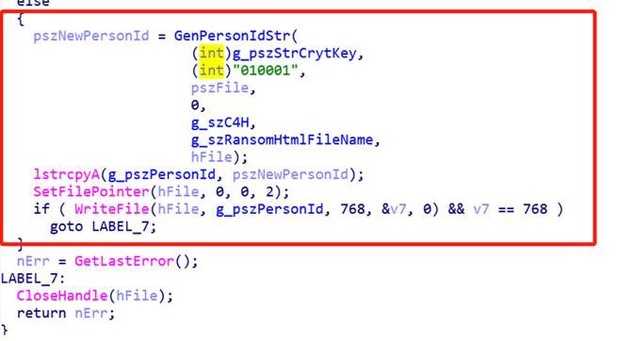 接下来,操作硬编码的字符串,结合新生成的RSA私钥生成PersonId,并且将PersonId存放于%public%目录下的记录文件中,确保每次加密使用的PersionId相同,同时也用来生成最后的勒索信息: