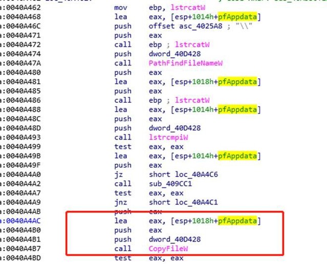 在加密逻辑未开始前,勒索病毒做了大量的准备工作,首先将自身复制到了%appdata%目录下: