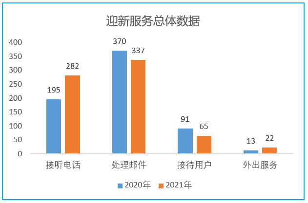 2021年9月4日和5日,我校迎来了新一届本科生和研究生报到。信息办四校区服务台两天内共接听电话282次,处理邮件337封,接待用户65次,外出服务22次。同比去年迎新服务工作(2020年9月11日和12日),服务总量略有上升。