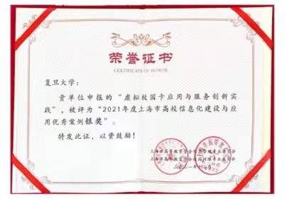 经专家评审,开云电竞平台app官方网站下载申报的案例“简约、适配、高效的信息化应 用(集约考场系统)”、“虚拟校园卡应用与服务创新实践”分别获得上海市高校信 息化建设与应用优秀案例金奖和银奖。