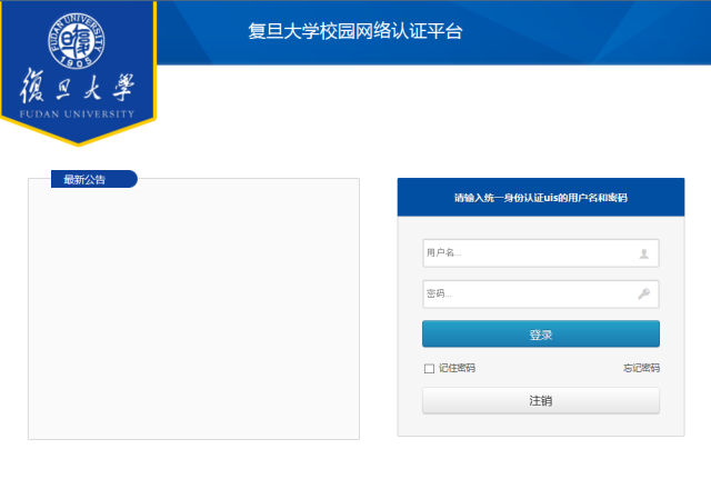 (1) When accessing an external website, a login page will automatically pop up, as shown in the figure below. Log in using your Unified Identity Service (UIS) account and password. If the login page does not appear, you may manually enter https://wlrz.fudan.edu.cn in your browser to proceed with authentication.