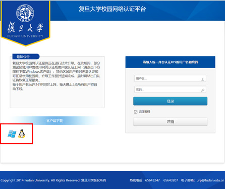 (1) Open the authentication webpage at https://wlrz.fudan.edu.cn. As shown in the figure, download and install the client software suitable for your operating system.