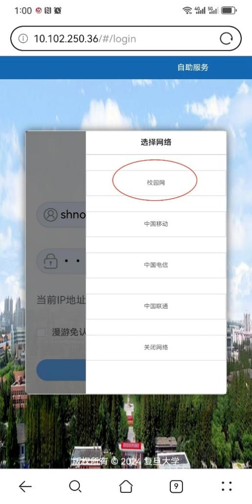 Connect the device to the wireless signal ‘iFudan.stu’.
