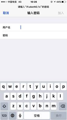 2) 点击“iFudanNG.1x”,在用户名和密码栏输入您的无线网络帐号信息,点击“加入”;